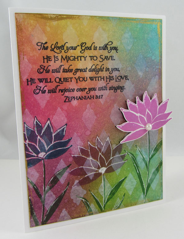 I started this canvas back in June and fianlly got it finished up a few weeks ago (it's been an extremely busy summer). It's for our daughter using her favorite color combination (purple & green) and her favorite quote. I was a lot of fun to make and she Loves it!!!!!! Stencils and embossing paste to create the texture on the canvas. Distress paints to paint it. Stamping with Ranger's Archival Ink. Viva Inka Gold for highlights. Ranger's sticky back canvas onto cardstock and then die cut for the flowers and butterflies, colored with Distress paint, and stamped with Ranger's Archival Ink. Manila cardstock for the leaves - larger ones are stamped (Wendy Vecchi image), cut out, painted, embossed with an embossing folder and black and white pens used - the smaller leaves are die cut, sprayed with Dylusions, and sealed with fluid matte medium. The quote is computer generated. Viva green pearl pen dots, Ranger's white liquid pearl dots, and old pearl in the center of the rose, Viva purple pearl pen dots on the butterflies. Gold braided cording.