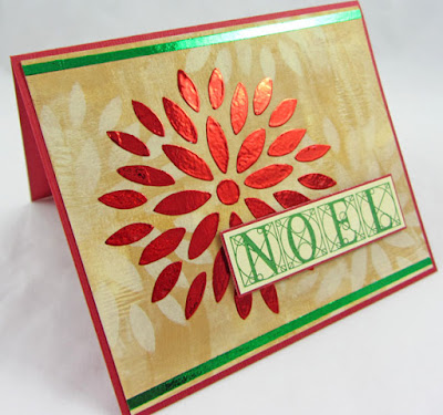 For the distressed flower card I added a little Treasure Gold Florentine around the edges and then stitched around also. Noel is from Lin's set