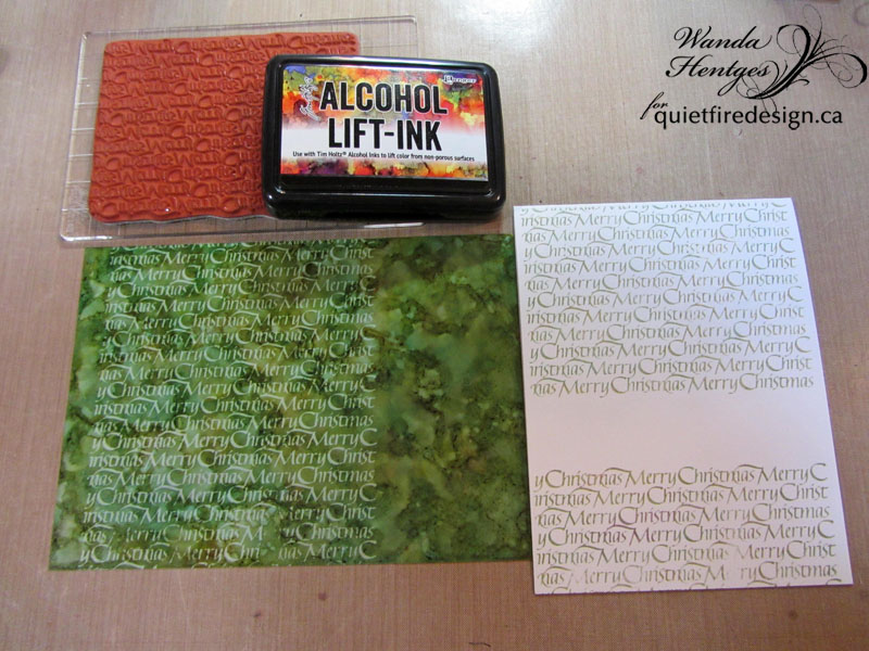 Last week I was able to pick up the Alcohol Lift-Ink!! This ink is fabulous!!! I was hooked with my first play (see my previous post). This is from my second play. I worked up the alcohol inks on Yupo paper, stamped the Merry Christmas background with Alcohol Lift-Ink, and transferred the pulled ink onto my card. I had to stamp twice to get all the way down the Yupo paper and when I stamped onto the card I left a space. The Yupo piece is used in a card that I'll be sharing Friday.